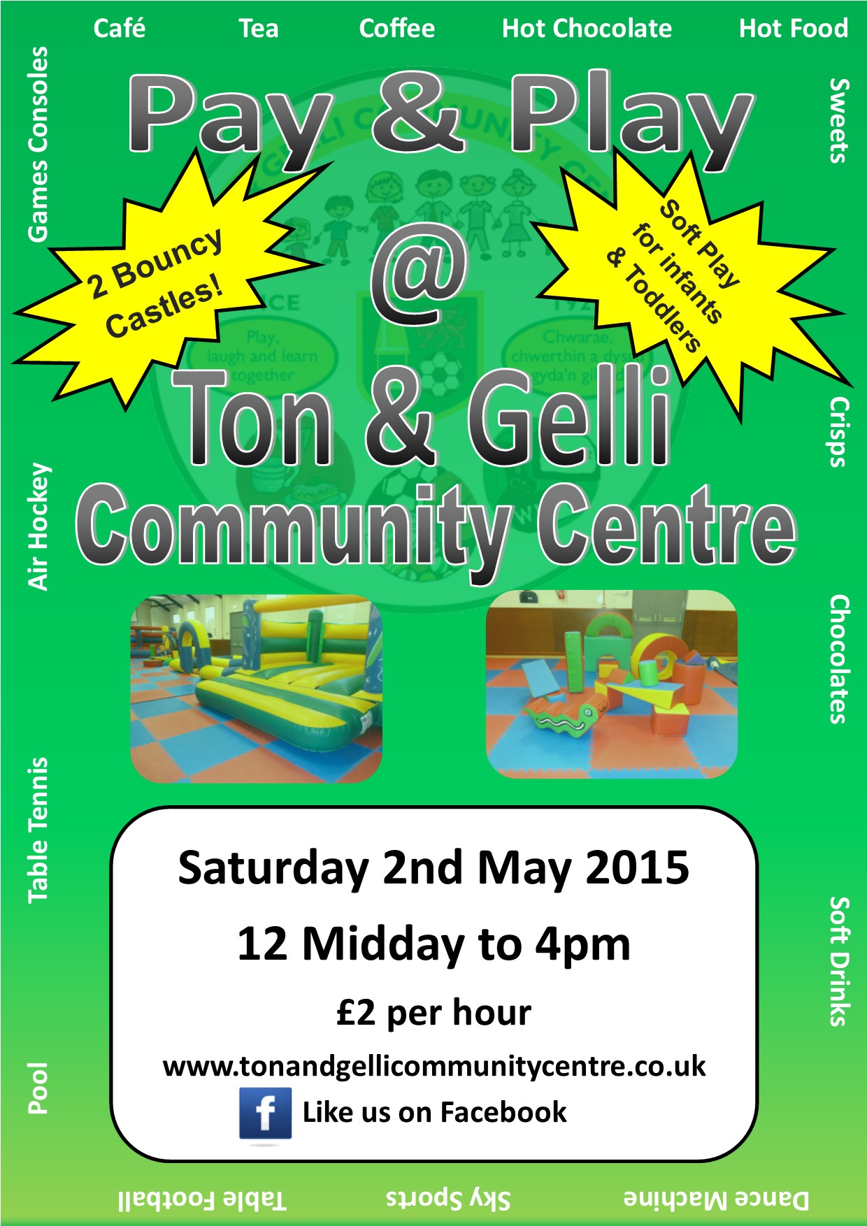 Our next Pay and Play is here at the Community Centre this coming Saturday – 2nd May 2015!!! Open from 12 Midday to 4pm. Come along and play on the Bouncy Castles (under 11s) and soft play (0-8 years) – parental supervision required! £2 an hour! Lots to do including…….